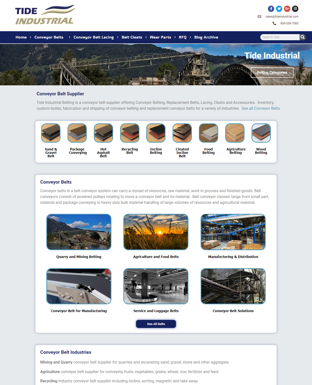 Professional and comprehensive WordPress website for an industrial supplier with many pages and product lines. Built to highlight and showcase the company, products, and brand.